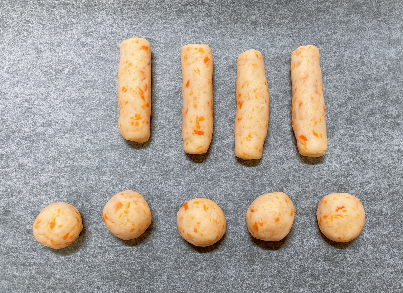 6. 반죽을 길쭉한 형태나 동그란 모양으로 빚어주세요.