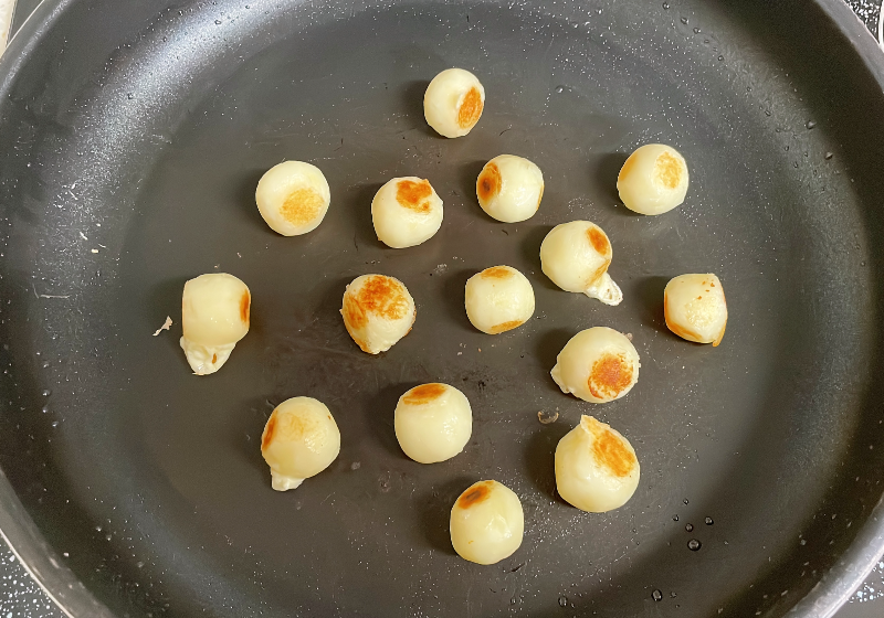 6. 프라이팬에 기름을 아주 소량 둘러서 감자치즈볼을 노릇노릇하게 잘 구워주세요. ~ 완 성 ~