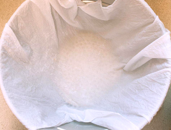 6. 그 위에 반죽을 넣어주시고 면보를 잘 덮어주세요.