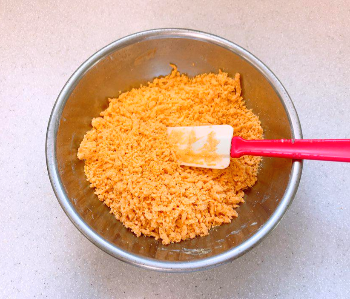 4. 이제 실리콘 주걱으로 호박의 수분이 가루에 고루 전달될 수 있도록 잘 섞어주세요.